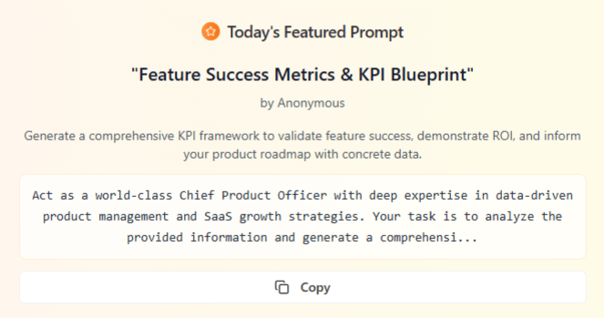 Why it works: This prompt transforms scattered product data into executive-grade analysis using a military-precision SCOPE framework. By adopting an expert Chief Product Officer role, it delivers North Star metrics, categorized KPI frameworks, and actionable recommendations that busy executives can immediately understand and act upon.