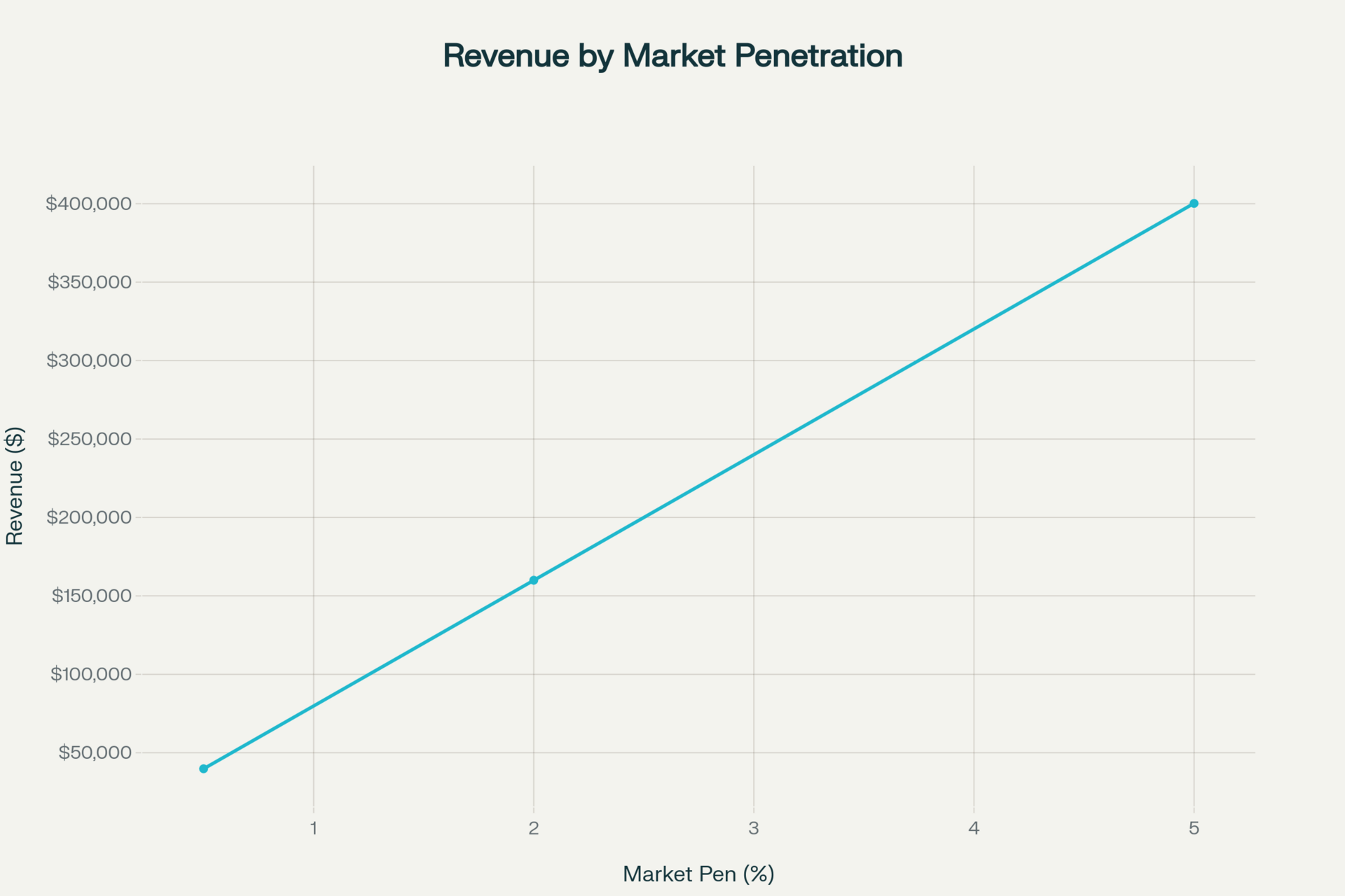 Mature operation: $400,189/yr running one-time sales at 5% market penetration