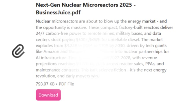 Today's idea is a portable power plant business - tiny reactors you ship to remote sites that need electricity nobody else can deliver profitably.